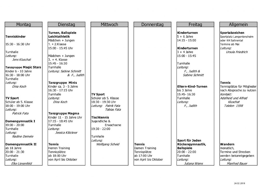 Unser Sportprogramm Unser aktuelles Sportprogramm können Sie hier im PDF-Format anschauen und herunterladen: Flyer 2018 - Seite 1Flyer 2018 - Seite 2